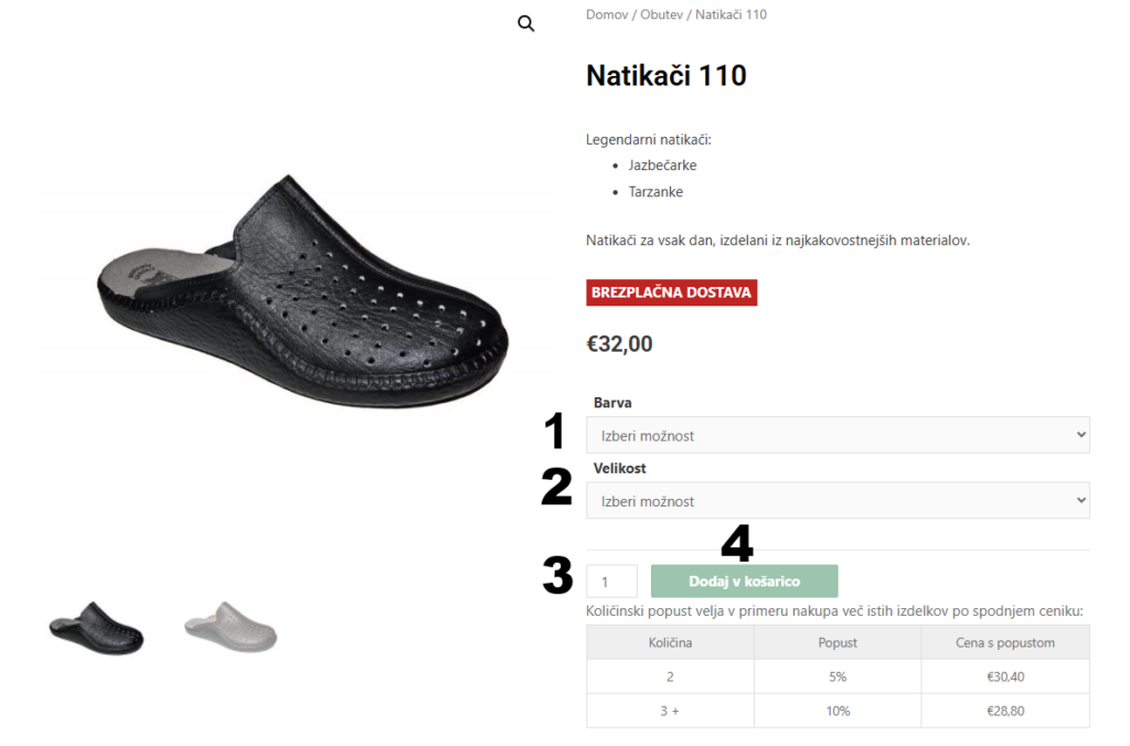 4. Dodajte v košarico. Na mobilnem pogledu vas spremlja gumb z enako funkcionalnostjo dodajanja v košarico.
