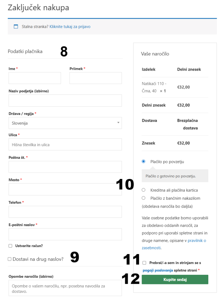 12. Zaključek nakupa, na vaš elektronski naslov boste prejeli podatke o naročilu.